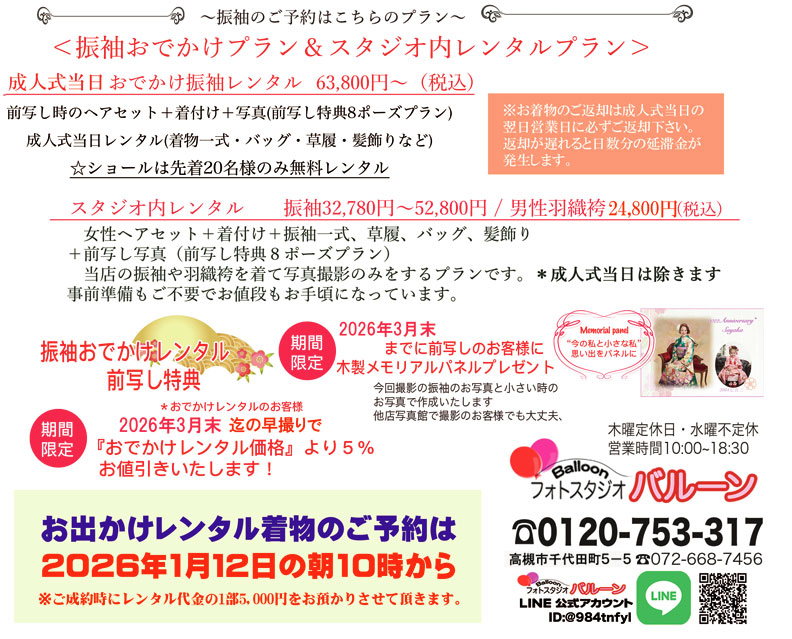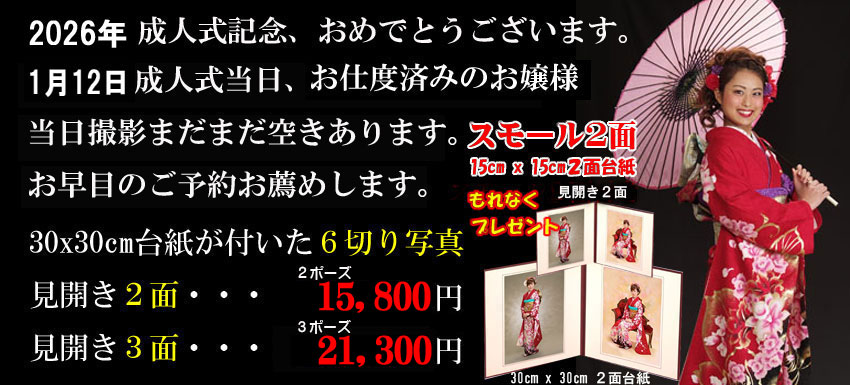 成人式当日価格(デザインアルバムは午後1時からの撮影です)